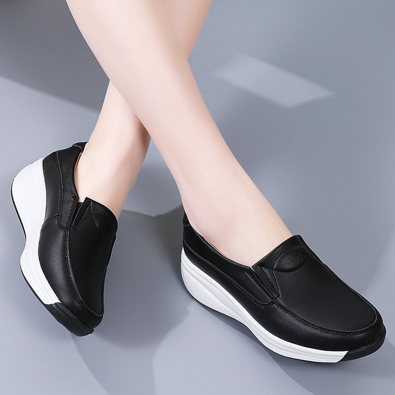 Women's wedge heel leather shoes